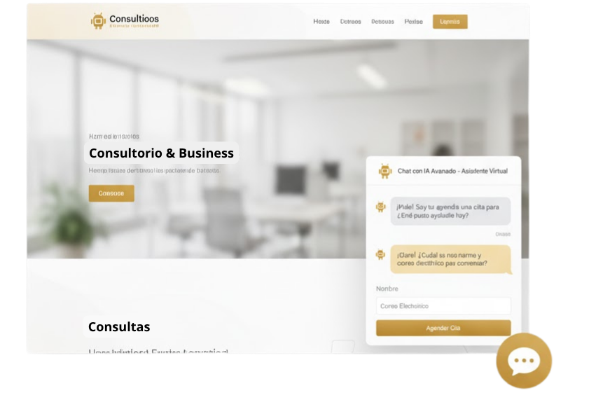 Integra un chatbot inteligente en tu web que responde preguntas frecuentes, califica prospectos y agenda citas al instante.